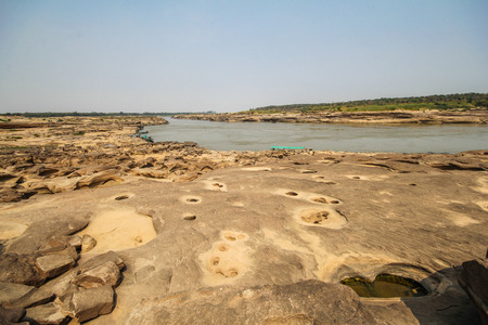 Sampanbok (3000 Hole), The Amazing of Rock in Mekong River, Ubon Ratchathani, Thailand.