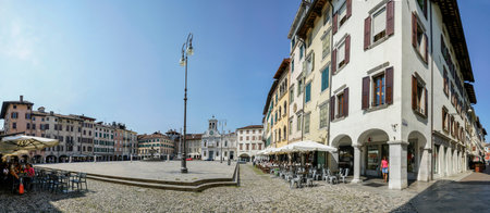 Udine, Italy - Circa August 2018. Beautiful streets of Udine in sunny day.