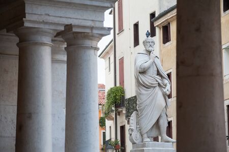 two ancient columns with statues in the square of the city of vicenza in italia