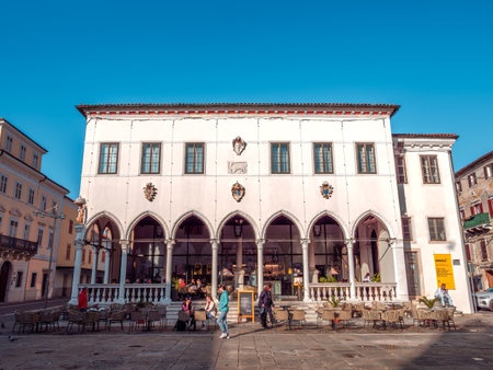 Koper, Slovenia - November 8, 2023: The Loggia Palace is a Venetian Gothic palace in Koper, a port town in southwestern Slovenia.