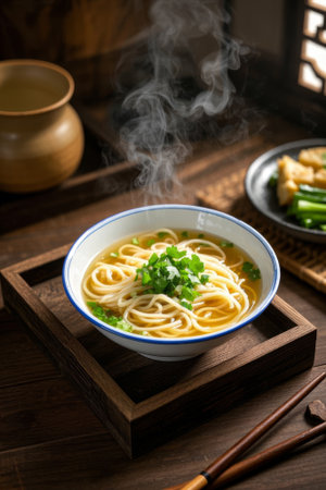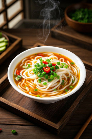 Steaming home cooked noodle delicacies