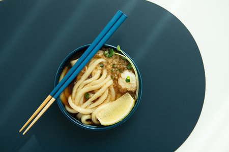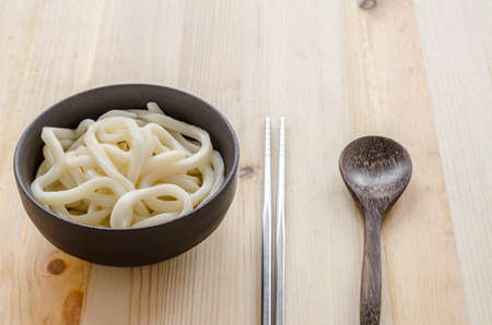 Udon noodle and chopsticks on the table