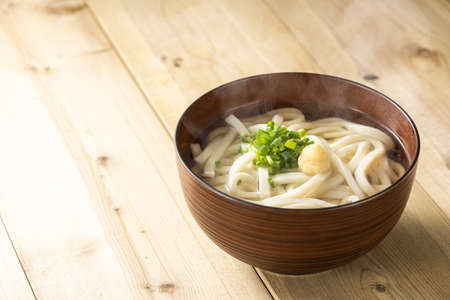 Japanese style hot Udon noodle with soup and side dish. A very delicious food in Japan