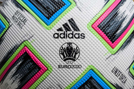 PARIS, FRANCE, JANUARY. 20. 2020: Close Up, Uniforia ball, Euro 2020