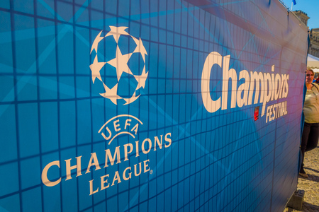 Moscow, Russia - May, 2018: UEFA Champions League continental club football competition organized by the Union of European Football logo sign.