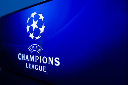 Bucharest, Romania - October 4, 2011: Close-up shot of a luminous ad for the UEFA Champions League. The UEFA Champions League is an annual international club football competition organized by the Union of European Football Associations (UEFA) since 1955 f