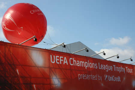 Balloon and tent for UEFA Champions League Trophy Tour held in oktober 2011,in Belgrade, Serbia, below Kalemegdan fortress,in the presence of Luis Figo and Ruud Gullit,under sponsorship of UniCredit Bank