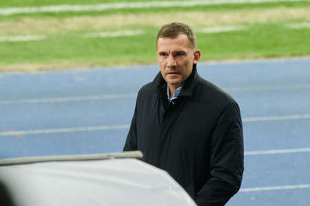 Kyiv, Ukraine - October 14, 2019: Andriy Shevchenko, head coach (manager) of Ukraine national football team before match of the qualifying EURO vs Portugal at the Stadium
