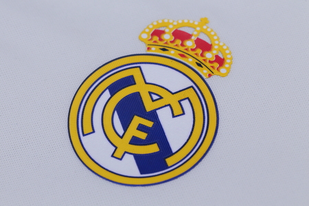 BANGKOK, THAILAND - JULY 10, 2016: The Logo of Real Madrid on Football Jersey on July 10,2016 in Bangkok Thailand.