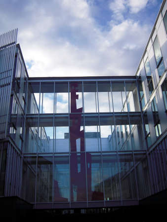 windows in a modern house. Exterior view of Finnish offices in Glass and metal buildings. High quality photo