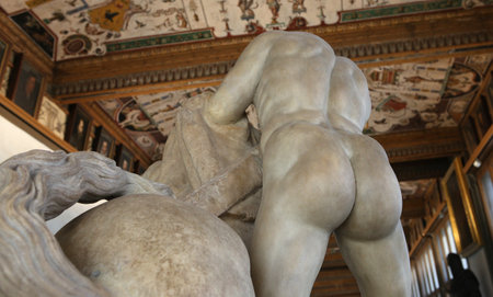 Florence, Italy - October 2022: Interiors of Loggia dei Lanzi museum on Signoria square