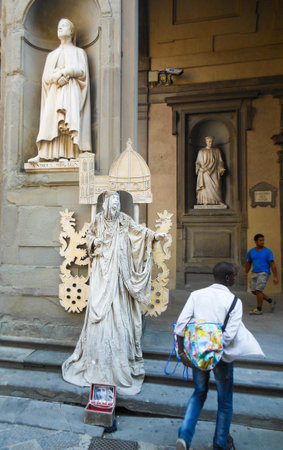 Florence, Italy- 04.08.2014 - Street performer entertaining tourists