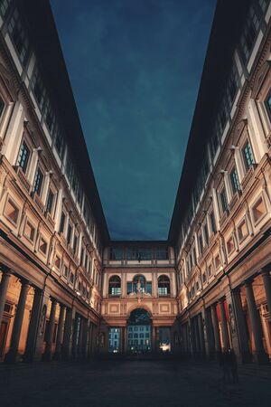 Uffizi gallery at night, Florence, Tuscany, Italy
