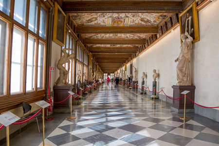 Florence, Italy - August 21, 2019: Interior of the Uffizi Gallery in Florence