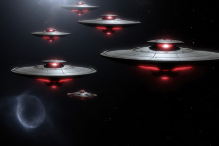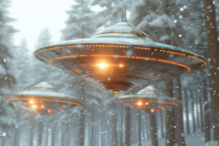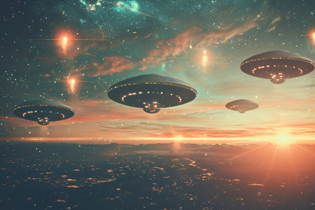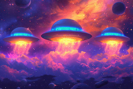 UFOs flying in the space. Generative AI
