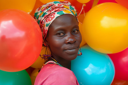 Unique African woman balloons. Holding smile girl. Generate Ai