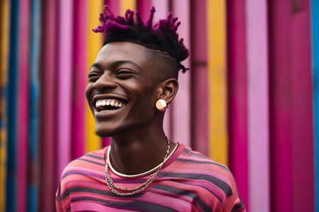Vibrant Afro american bright shirt. Summer model person. Generate Ai