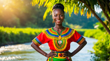 Smiling young African woman with toothy smile exudes confidence outdoors generated by artificial intelligence