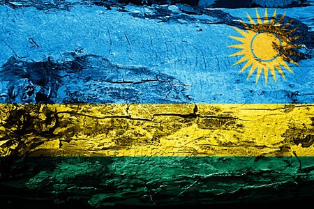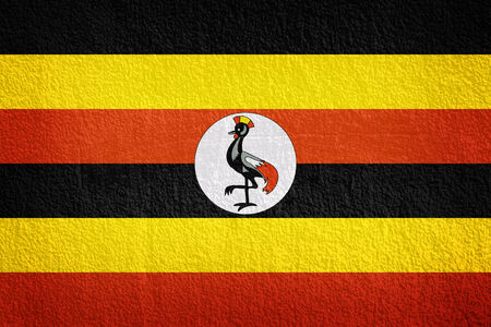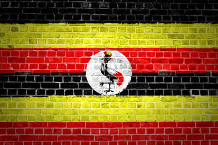 Uganda country national flag painting on old brick textured wall with cracks and concrete concept 3d rendering image realistic background banner