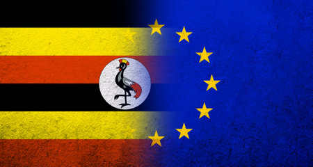 Flag of the European Union with Republic of Uganda National flag. grunge background