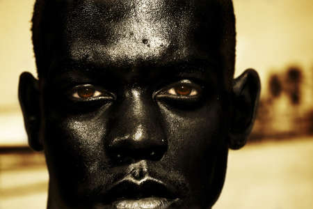 Shocked look at the eyes of african american black man reading text message. Close up. High quality photo