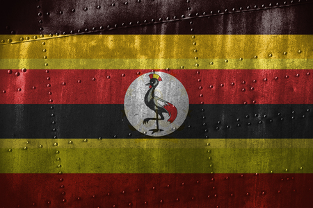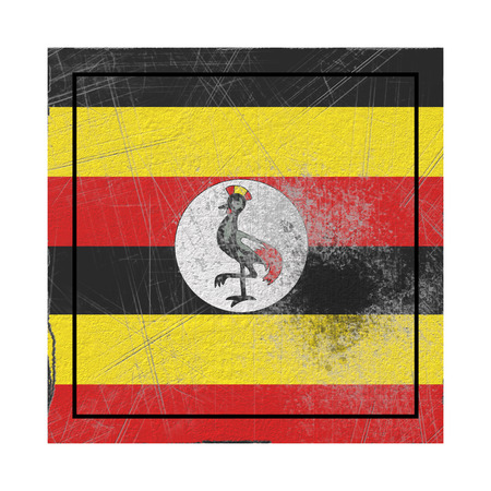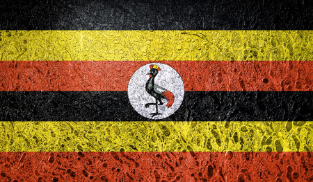 Republic of Uganda national fabric flag, textile background. Symbol of international african world country. State official ugandan sign.