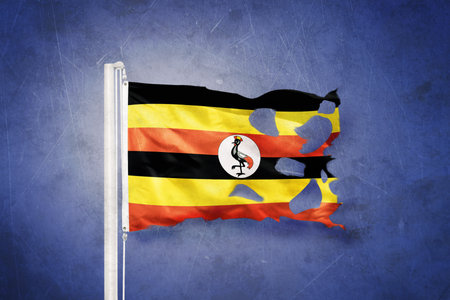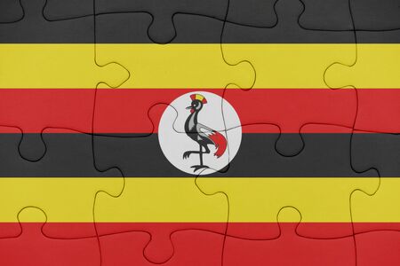 Illustration of a flag of Uganda over some puzzle pieces. Its a JPG image.