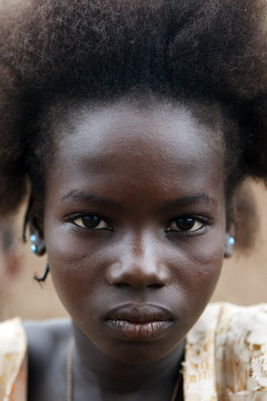 Country Senoufo,Burkina Faso - August 13,2009 : Girl Senoufo, women are responsible for chores and care for the crops.