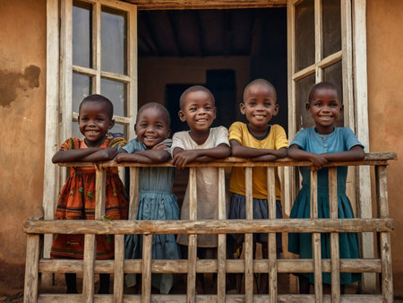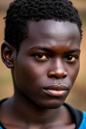 AI Generated. Young African Boy Looking Into The Camera At Sunset