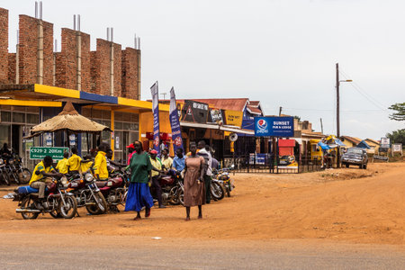 KUMI, UGANDA - FEBRUARY 25, 2020: Motorbike taxis in Kumi, Uganda