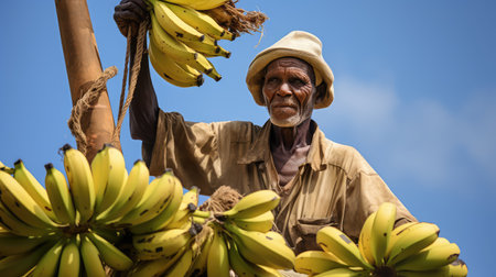 ripe banana tree illustration pole blade, basket agriculture, plantation tropical ripe banana tree