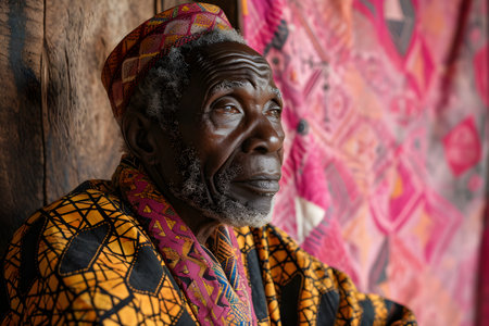 Old man tribe member wearing traditional clothes. Black history month. Civil rights, culture