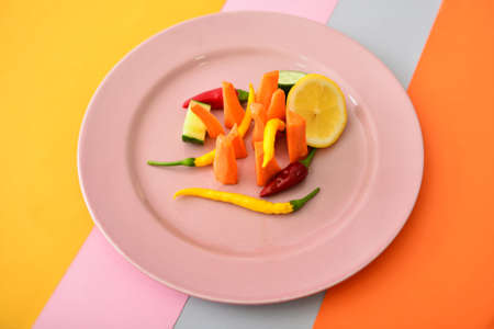 Vegetables and fruits characters with Googly eyes and funny faces. Proper nutrition concept.