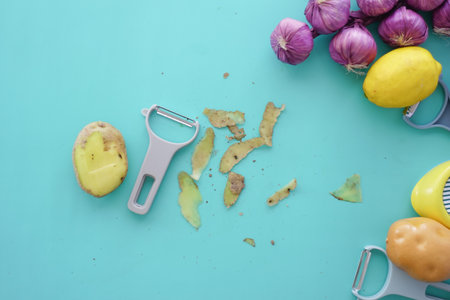 a top view flat lay of food ingredients, food photo template background, horizontal
