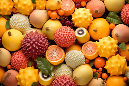 Summer abstract background with mix of various exotic fruits.
