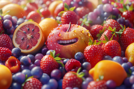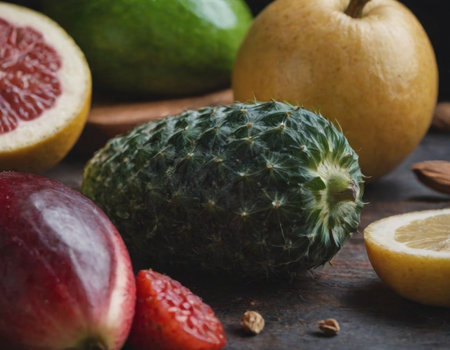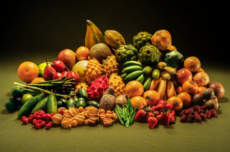 A close up of a bunch of different fruits sitting on top of each other, AI