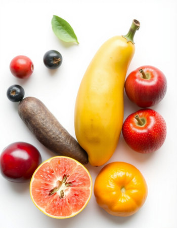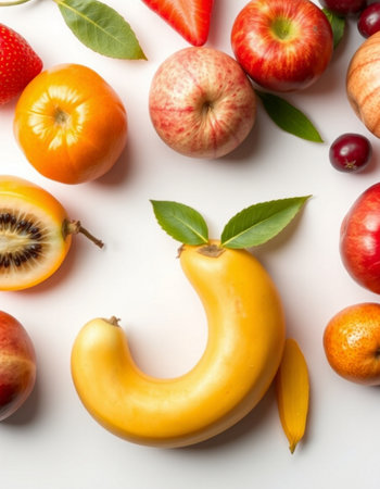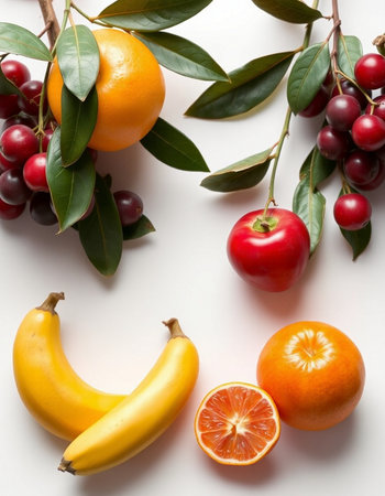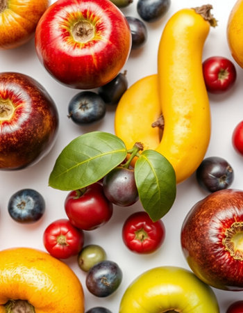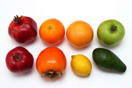 Fresh fruits on a white background. Healthy food concept.
