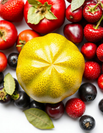 Fruits and berries on a white background. Healthy food concept.