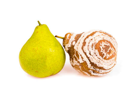 Fresh and rotten pears studio isolated
