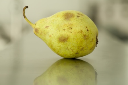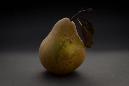 Ripe pear on dark background horizontal about to spoil