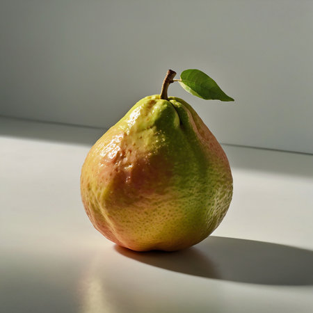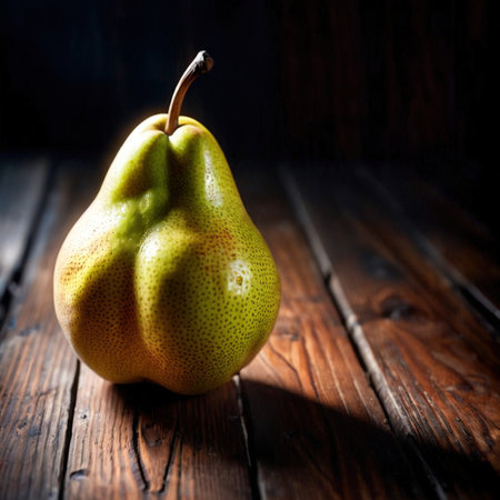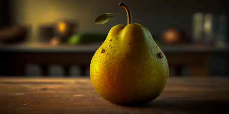 AI Generated. A ripe pear with a smooth surface sits alone