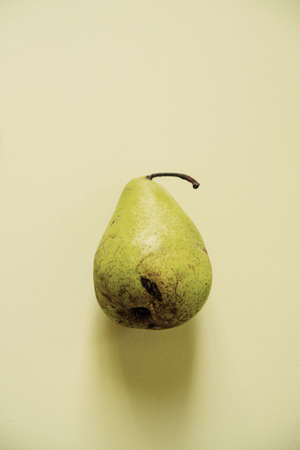 Organic pear on a yellow background. Pear decoration stock images. Pear home decor.