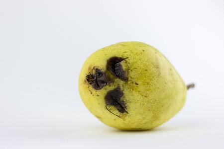 Rotten yellow pear on a white isolated background