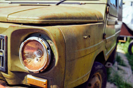 Old Soviet cars in disassembled condition, the body of old rare cars