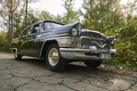 Moldova republic of, Kishinev, November 5, 2020: Soviet retro car GAZ-13 The Seagull in autumn park.