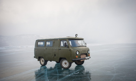 Baikal lake, Russia, March 11, 2016. The Car on the ice of lake Baikal, Russia