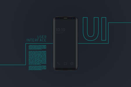 User interface concept design with smartphone. Phone with the layout of the UI design. Black model Mobile phone. Vector illustration.