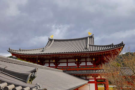 Traditional Japanese architecture in the Byodoin Complex at the city of Uji, Kyoto, Japan.