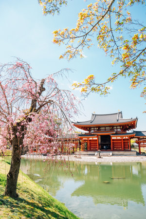 Byodo-in temple with spring cherry blossom in Uji, Kyoto, Japan