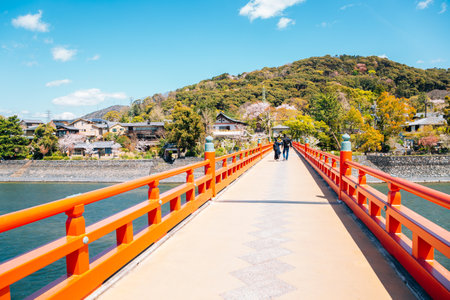 ARASHIYAMA, Kyoto ,Japan - APRIL 2,2018 : Arashiyama is Kyoto's second-most important sightseeing district. It's filled with temples, shrines and the famed Arashiyama Bamboo Grove in Arashiyama, Kyoto, Japan.